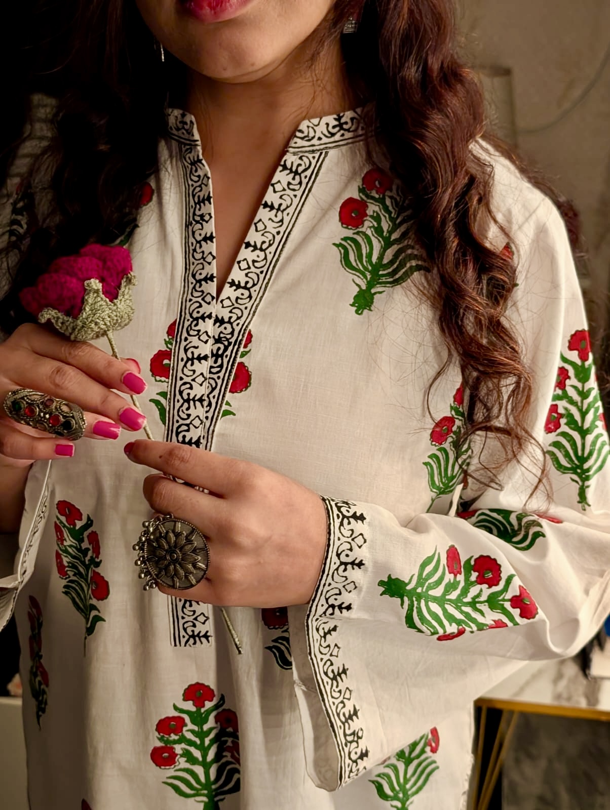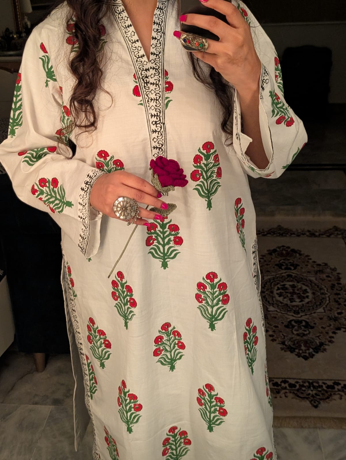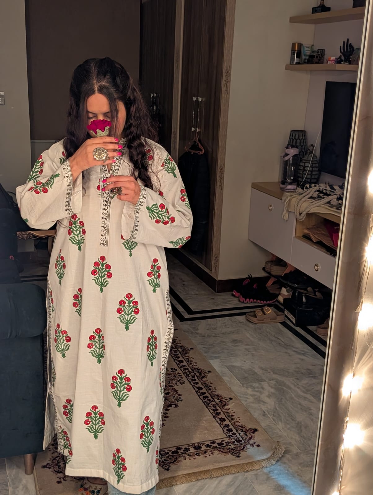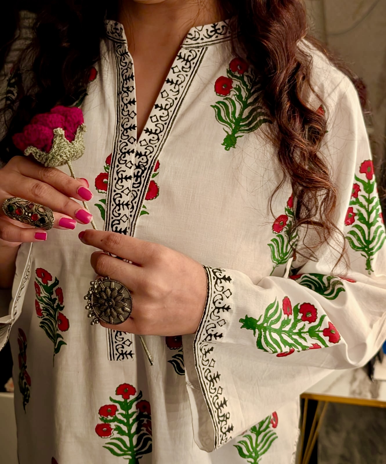 Dastaan is a graceful expression of timeless craft. Featuring a subtle block print with earthy leaf motifs and a striking geometric neckline, this shirt blends tradition with modern simplicity, perfect for effortless everyday elegance.