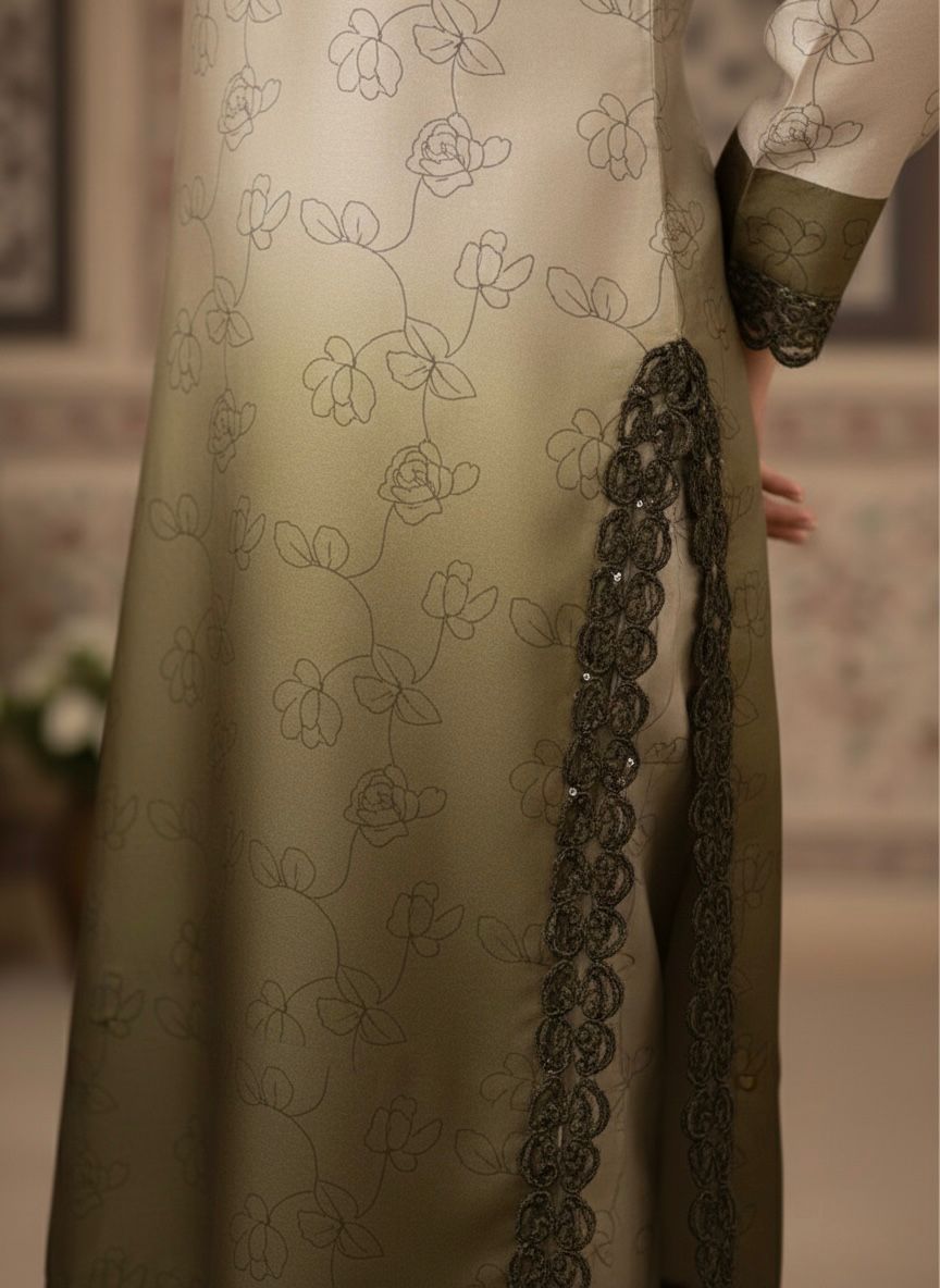 Embellishments on chalk daman and sleevs.
